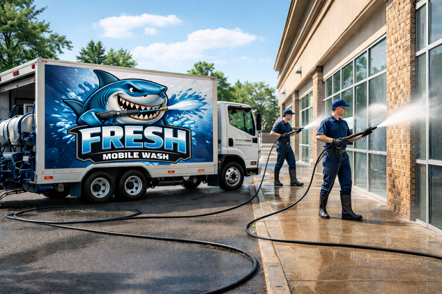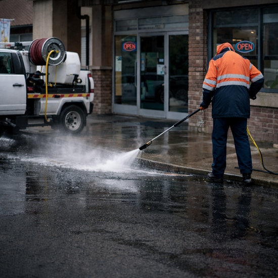 We’re a locally owned pressure washing company serving Barrie and Simcoe County, specializing in commercial properties, fleet washing, and exterior cleaning.